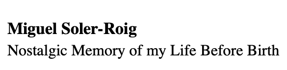 MIGUEL SOLER-ROIG: NOSTALGIC MEMORY OF MY LIFE BEFORE BIRTH